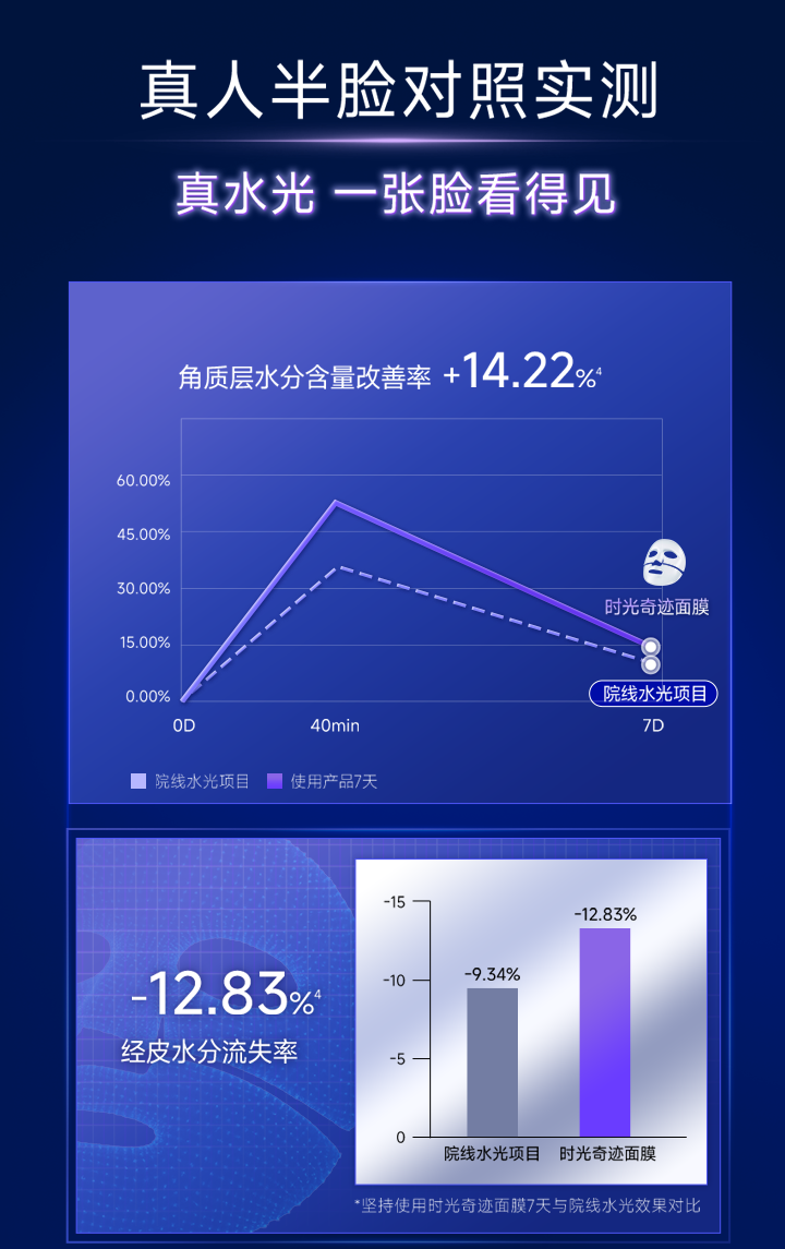 第三方测试数据为功效提供了实证:受试者使用该产品后,肌肤水润度\弹性以及面部紧致度都有显著的改善效果,验证了其 “7日等效水光” 的护理实力。它不仅适用于寻求高效抗衰的熟龄肌,更是敏感肌、医美术后等脆弱时期的安心之选。
